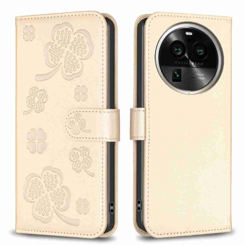 For OPPO Find X6 Pro Four-leaf Embossed Leather Phone Case(Gold)