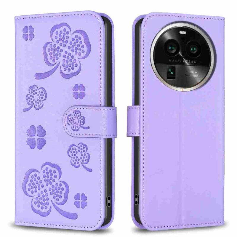 For OPPO Find X6 Pro Four-leaf Embossed Leather Phone Case(Purple)