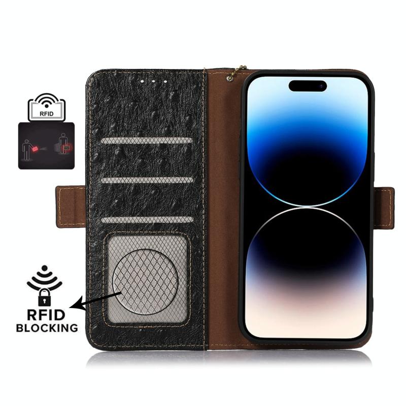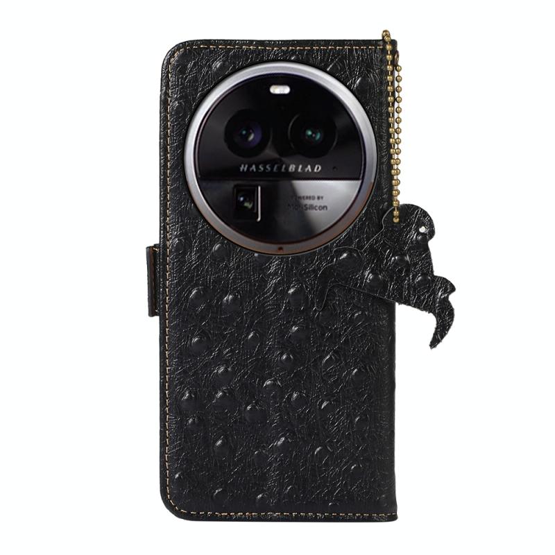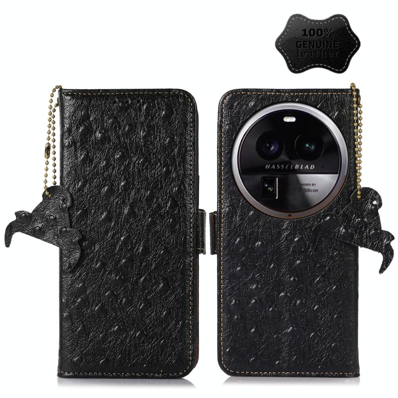 For OPPO Find X6 Pro Ostrich Pattern Genuine Leather RFID Phone Case(Black)
