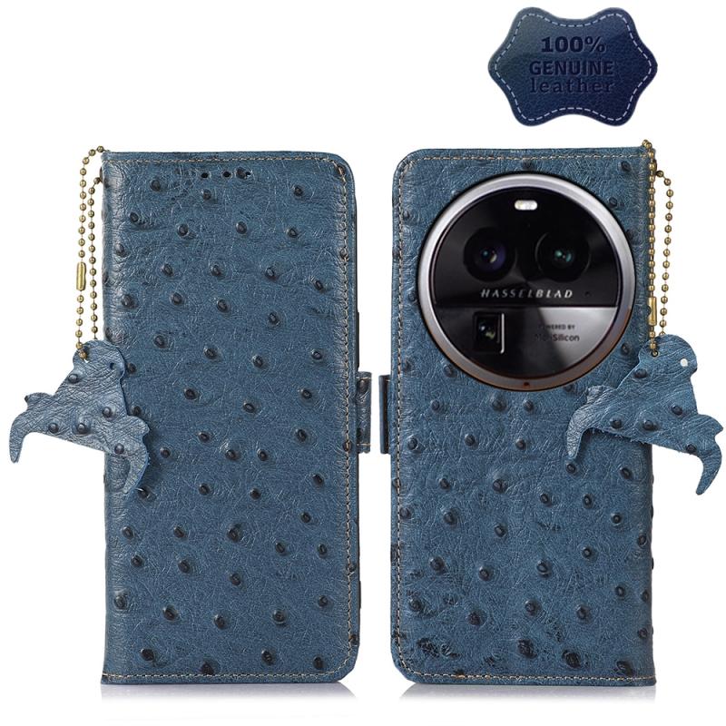 For OPPO Find X6 Pro Ostrich Pattern Genuine Leather RFID Phone Case(Blue)