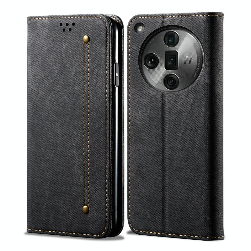 For OPPO Find X7 Denim Texture Casual Style Horizontal Flip Leather Case(Black)
