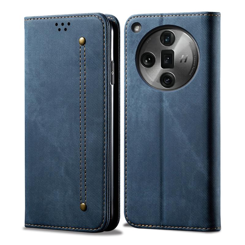 For OPPO Find X7 Denim Texture Casual Style Horizontal Flip Leather Case(Blue)