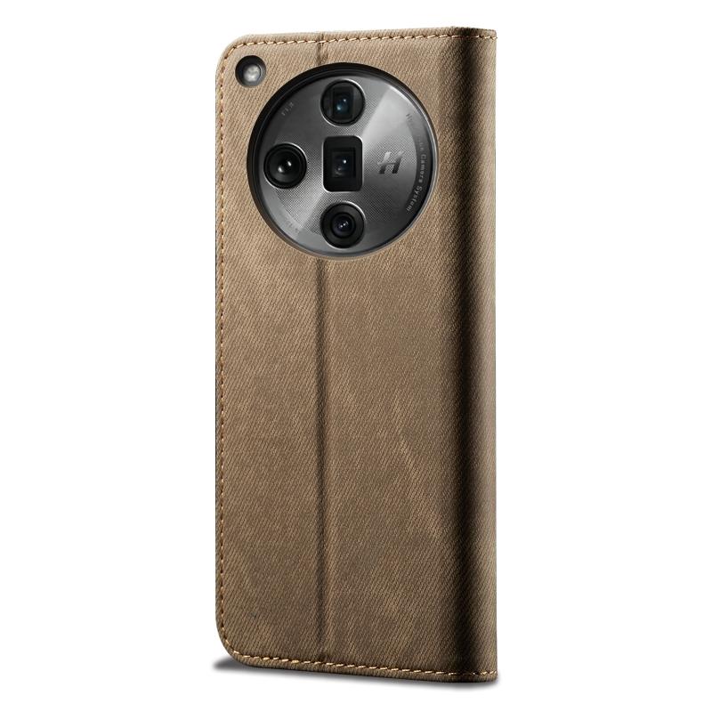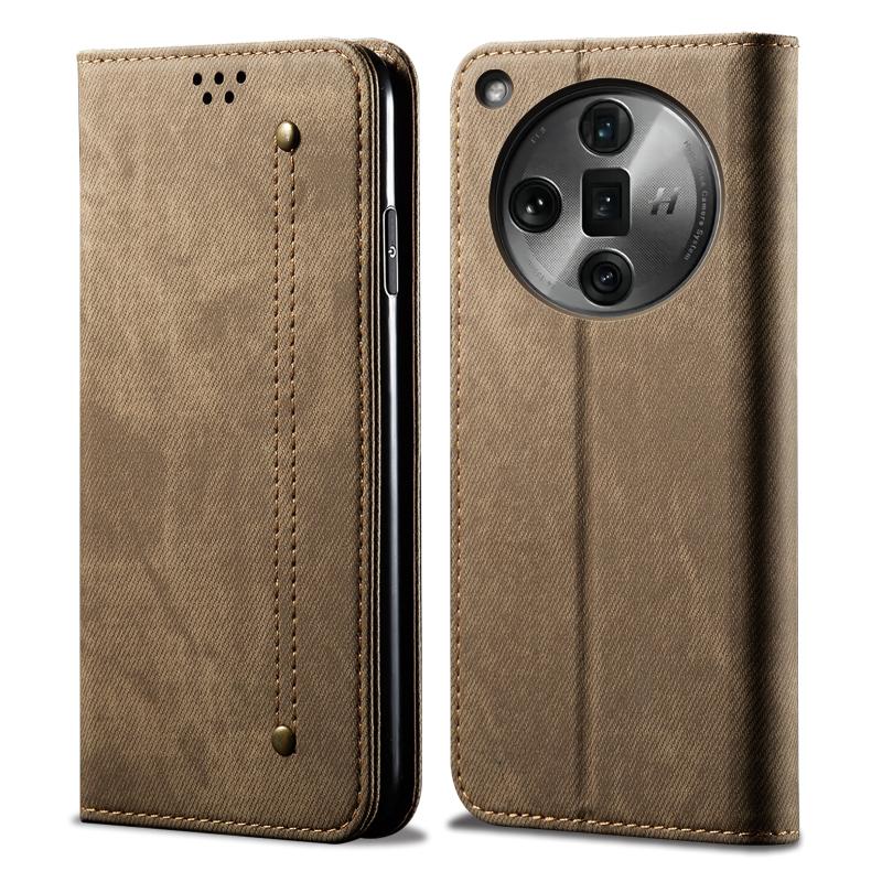 For OPPO Find X7 Denim Texture Casual Style Horizontal Flip Leather Case(Khaki)