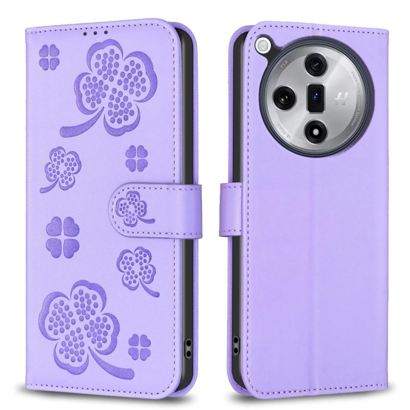 For OPPO Find X7 Four-leaf Embossed Leather Phone Case(Purple)