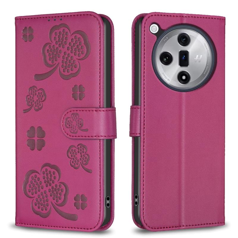 For OPPO Find X7 Four-leaf Embossed Leather Phone Case(Rose Red)