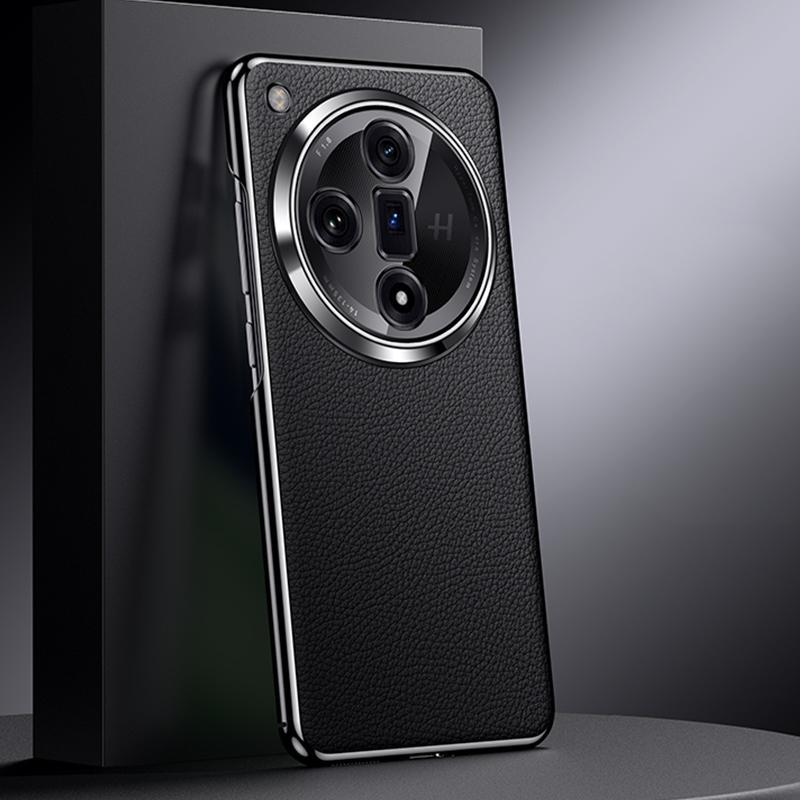 For OPPO Find X7 Genuine Leather PC Phone Case(Black)