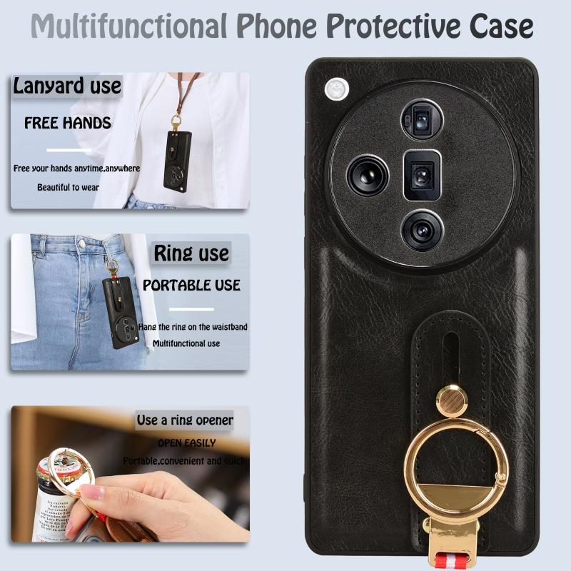 For OPPO Find X7 Wristband Leather Back Phone Case(Black)