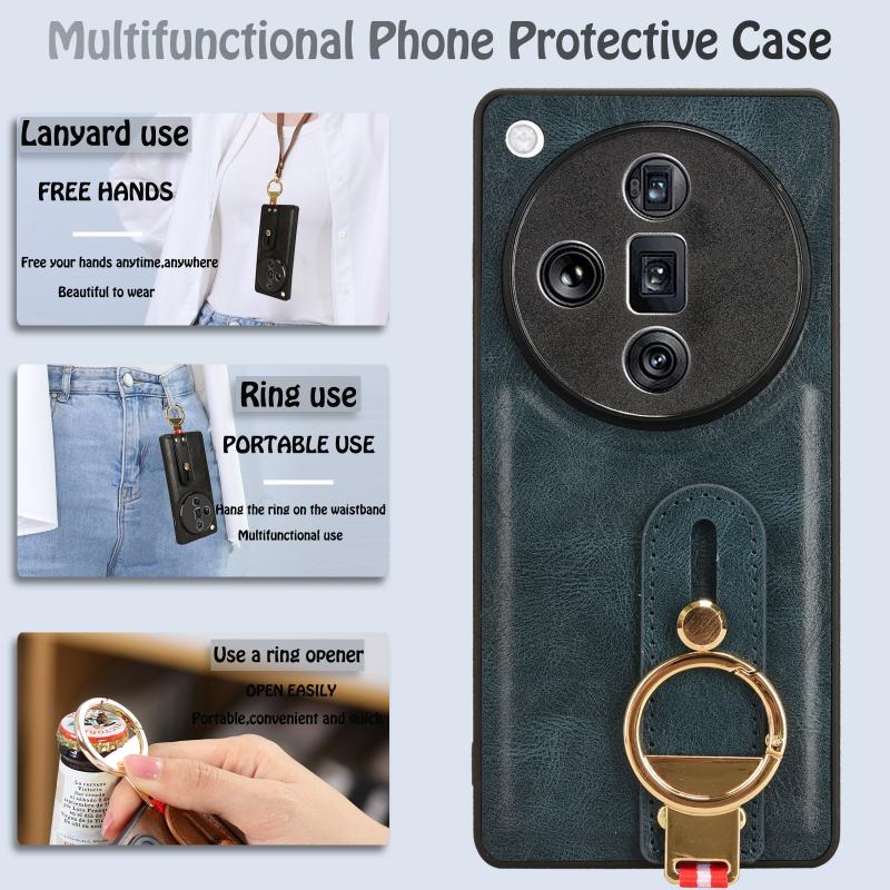 For OPPO Find X7 Wristband Leather Back Phone Case(Blue)