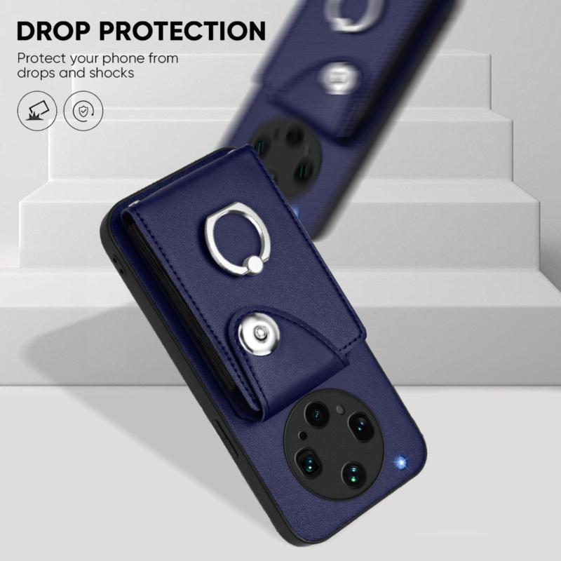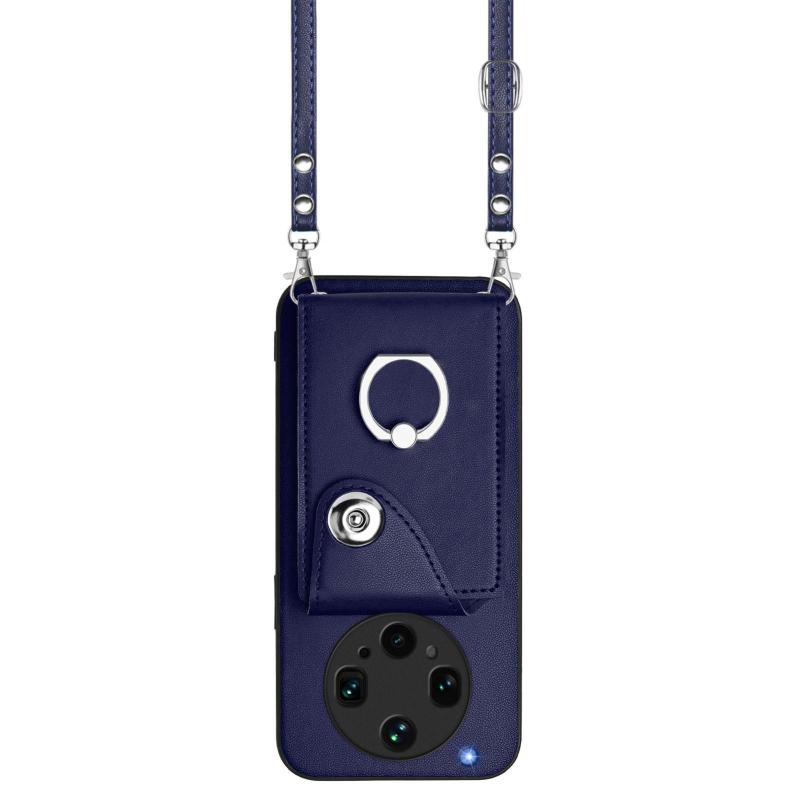 For OPPO Find X8 Ultra Organ Card Bag Ring Holder Phone Case with Long Lanyard(Blue)