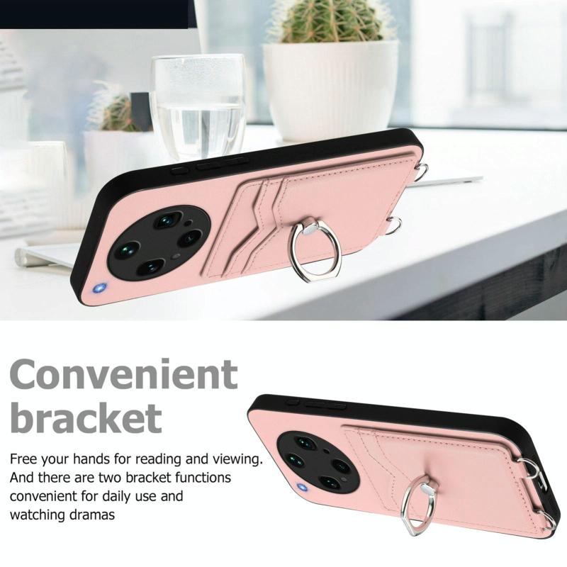 For OPPO Find X8 Ultra R20 Ring Card Holder Phone Case(Pink)