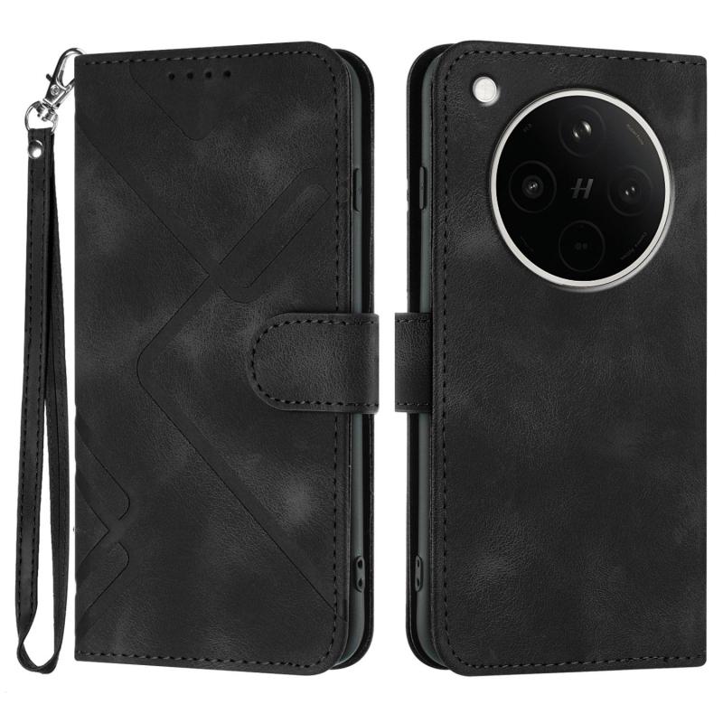 For OPPO Find X8s+ Line Pattern Skin Feel Leather Phone Case(Black)