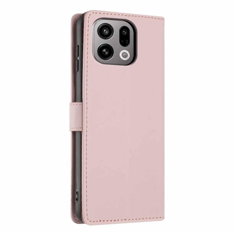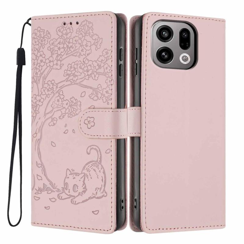 For OPPO Find X9 Tree Cat Embossed Flip Vegan Leather Phone Case(Rose Gold)
