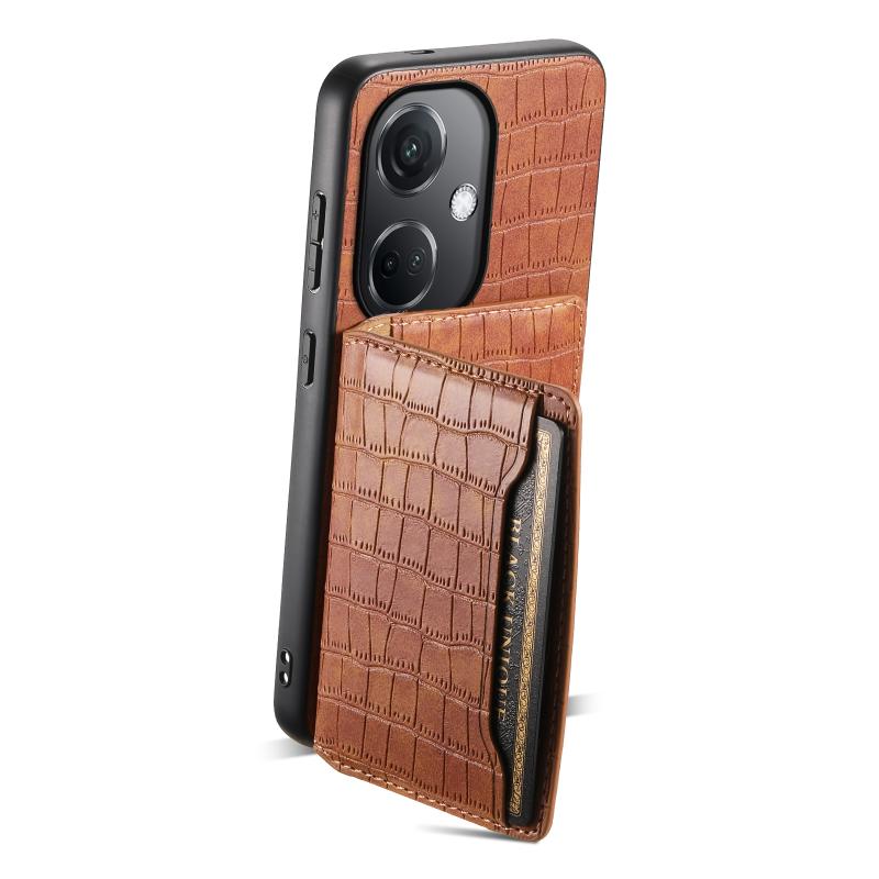 For OPPO K11 Crocodile Texture Card Bag Design Full Coverage Phone Case(Brown) (Denior)