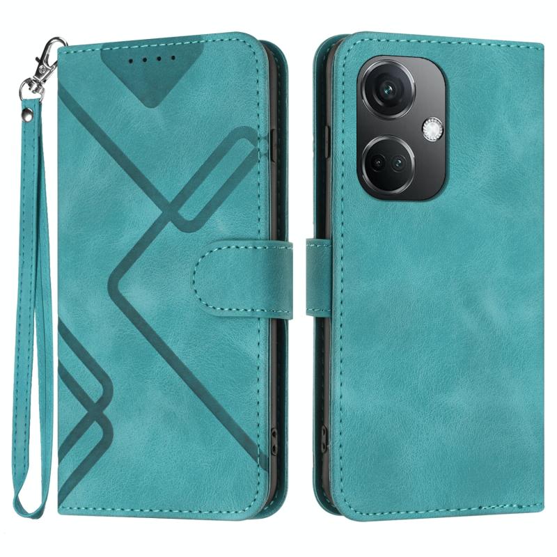 For OPPO K11 Line Pattern Skin Feel Leather Phone Case(Light Blue)