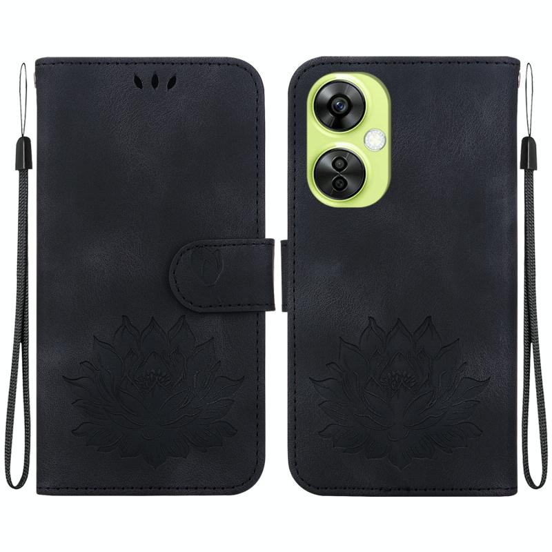 For OPPO K11x Lotus Embossed Leather Phone Case(Black)