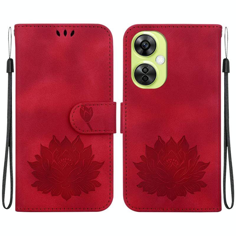 For OPPO K11x Lotus Embossed Leather Phone Case(Red)
