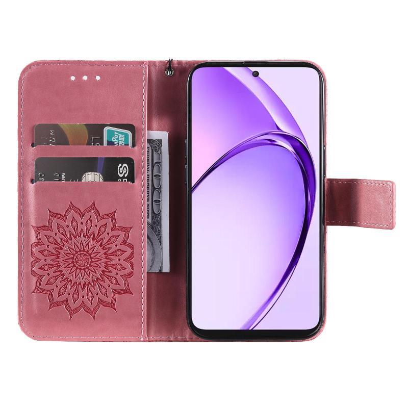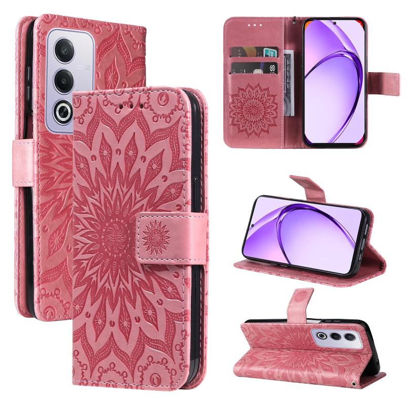 For OPPO K12x 5G Global Embossed Sunflower Pattern Flip Leather Phone Case(Pink)