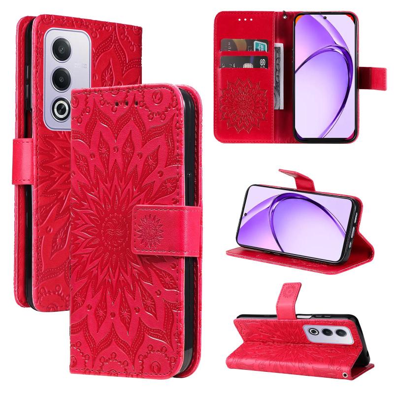 For OPPO K12x 5G Global Embossed Sunflower Pattern Flip Leather Phone Case(Red)