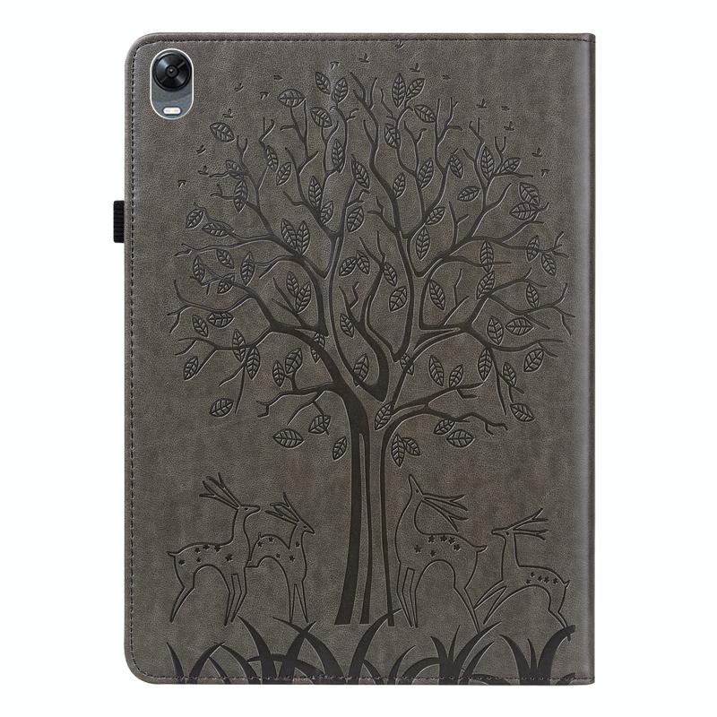 For OPPO Pad 11 inch Tree & Deer Pattern Pressed Printing Leather Tablet Case(Grey)