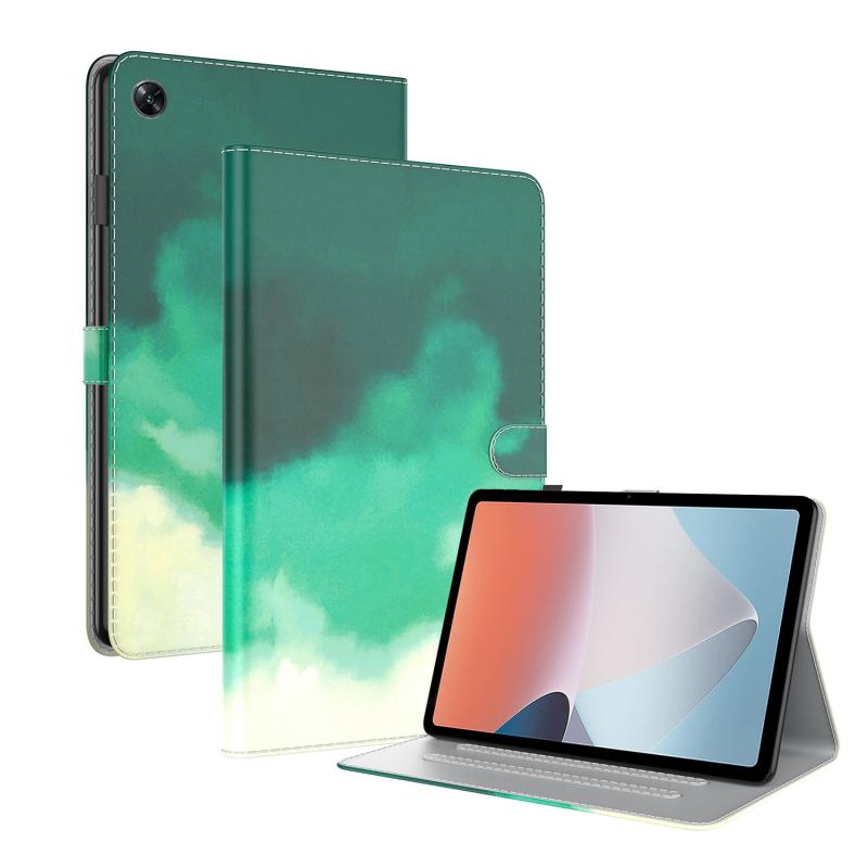 For OPPO Pad Air Watercolor Pattern Flip Leather Tablet Case(Cyan Green)