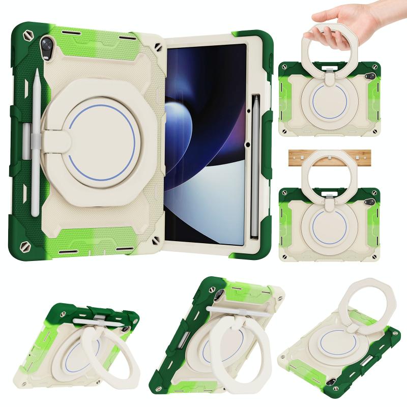 For OPPO Pad Armor Contrast Color Silicone + PC Tablet Case(Colorful Green)