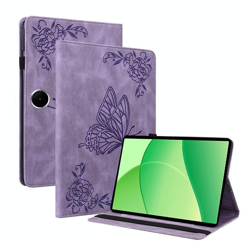 For OPPO Pad SE 11 inch Butterfly Flower Embossed Leather Tablet Case(Purple)