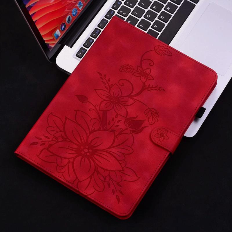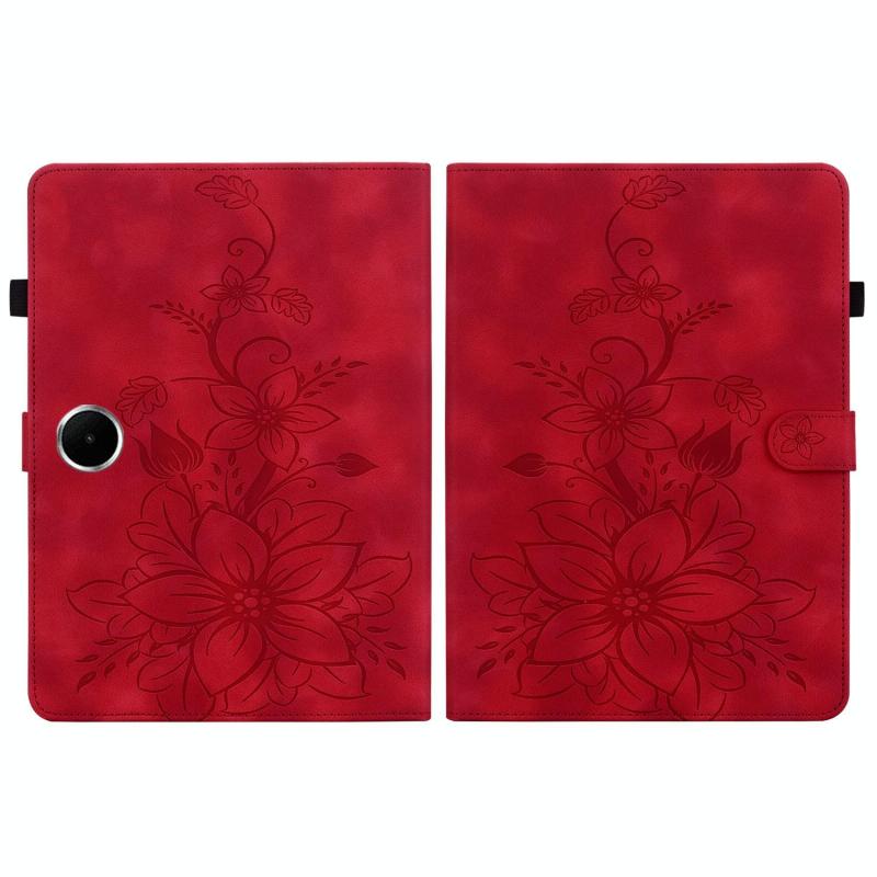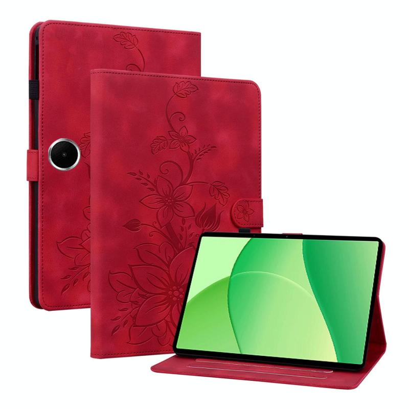 For OPPO Pad SE 11 inch Lily Embossed Leather Tablet Case(Red)