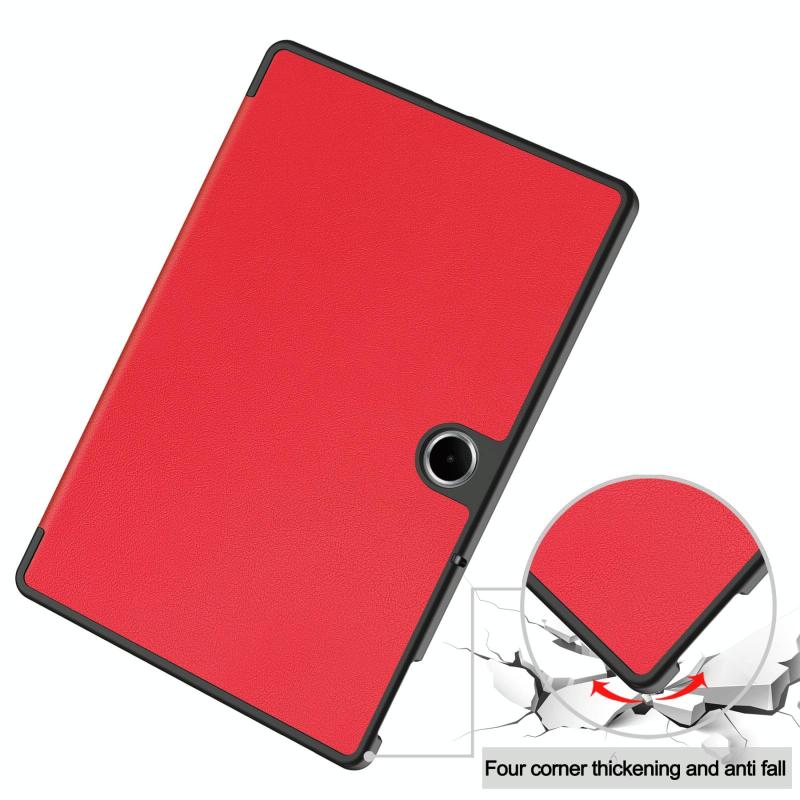 For OPPO Pad SE Custer Texture 3-Fold Holder Leather Smart Tablet Case(Red)