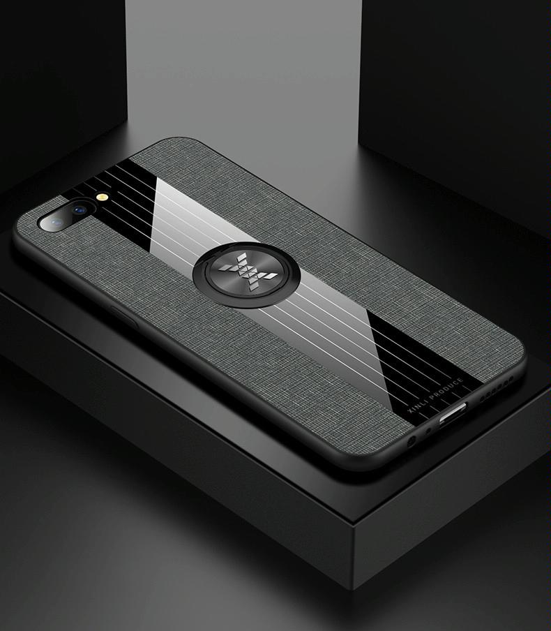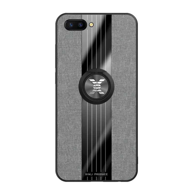 For OPPO R11 Plus XINLI Stitching Cloth Textue Shockproof TPU Protective Case with Ring Holder(Grey) (XINLI)