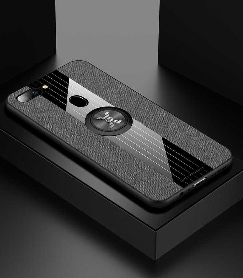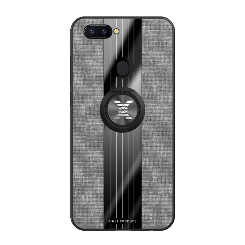 For OPPO R11S XINLI Stitching Cloth Textue Shockproof TPU Protective Case with Ring Holder(Grey) (XINLI)