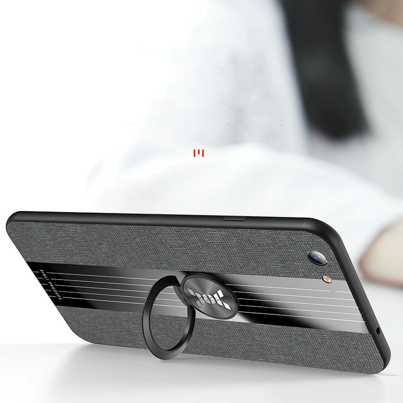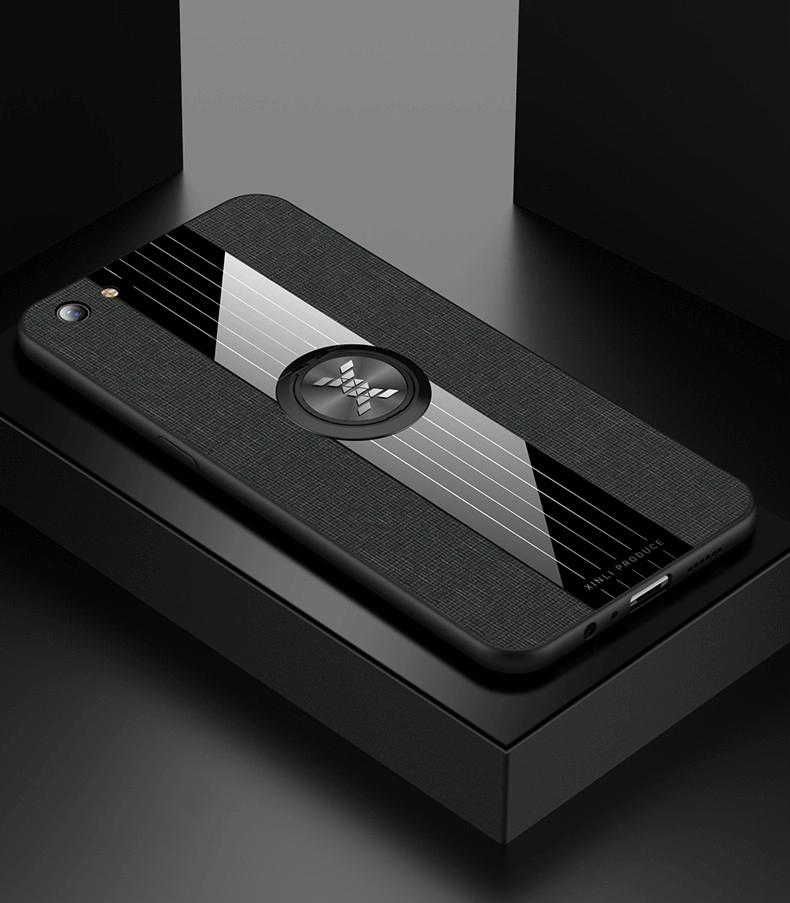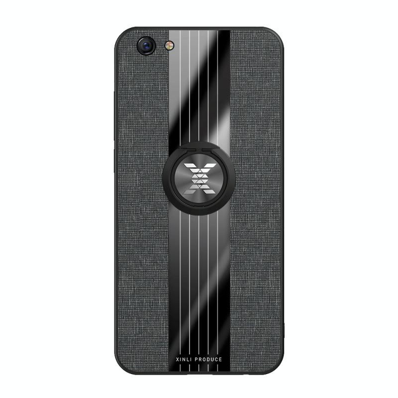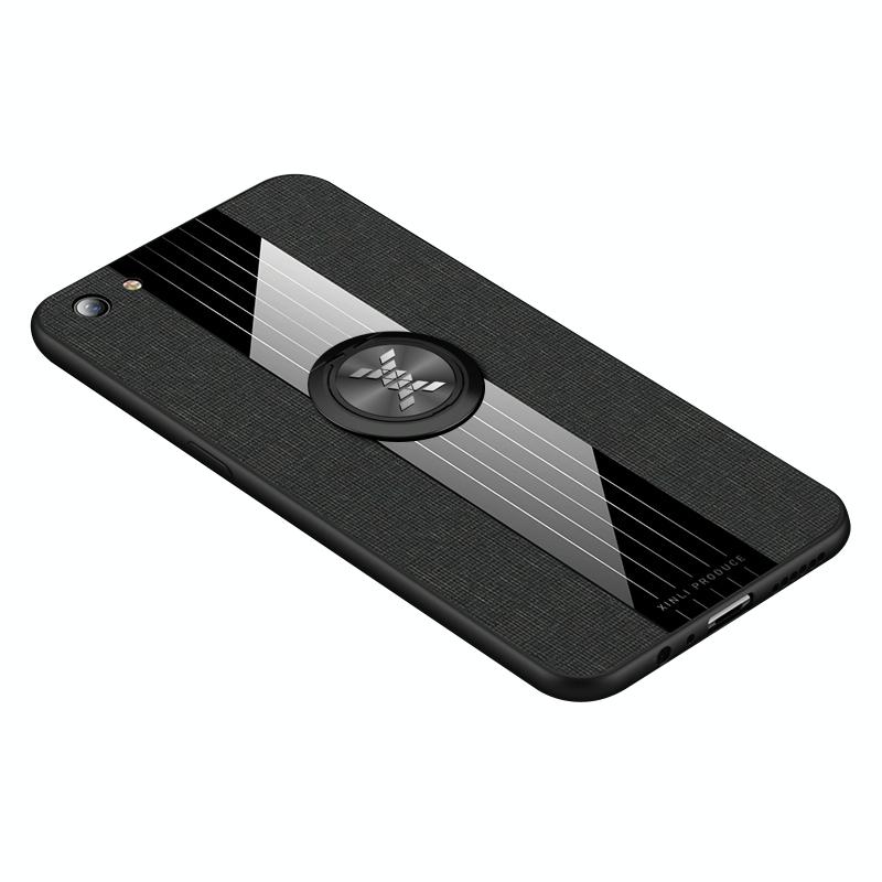 For OPPO R9S Plus XINLI Stitching Cloth Textue Shockproof TPU Protective Case with Ring Holder(Black) (XINLI)