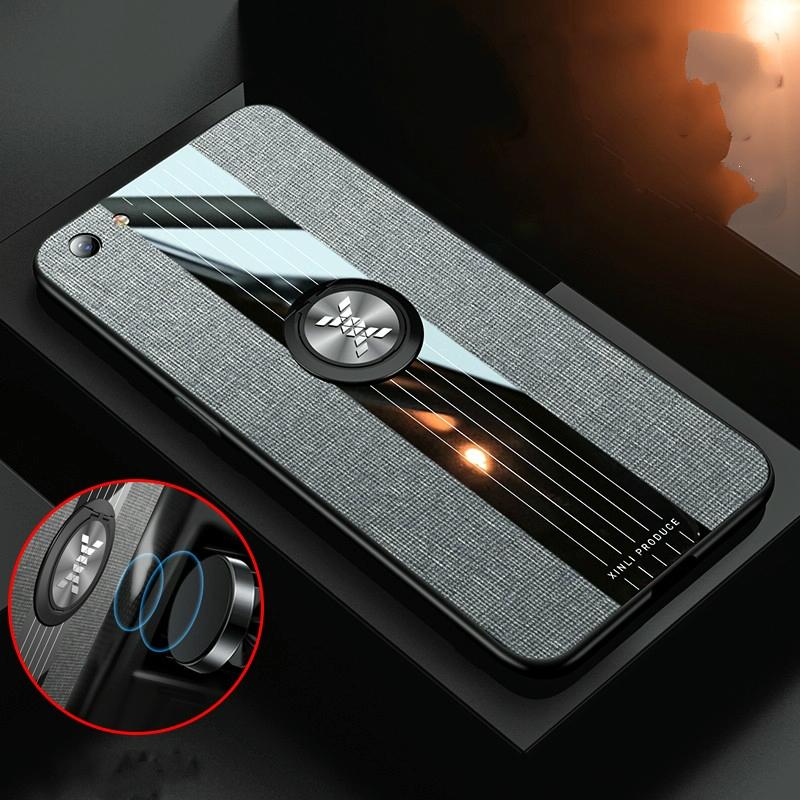 For OPPO R9S Plus XINLI Stitching Cloth Textue Shockproof TPU Protective Case with Ring Holder(Blue) (XINLI)