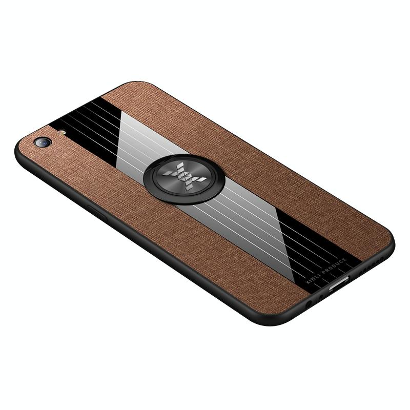 For OPPO R9S Plus XINLI Stitching Cloth Textue Shockproof TPU Protective Case with Ring Holder(Brown) (XINLI)