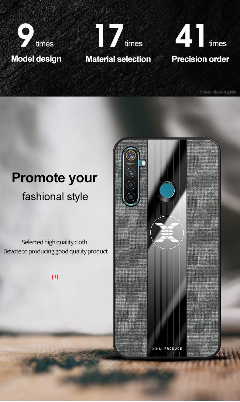 For OPPO Realme Q XINLI Stitching Cloth Textue Shockproof TPU Protective Case(Gray) (XINLI)