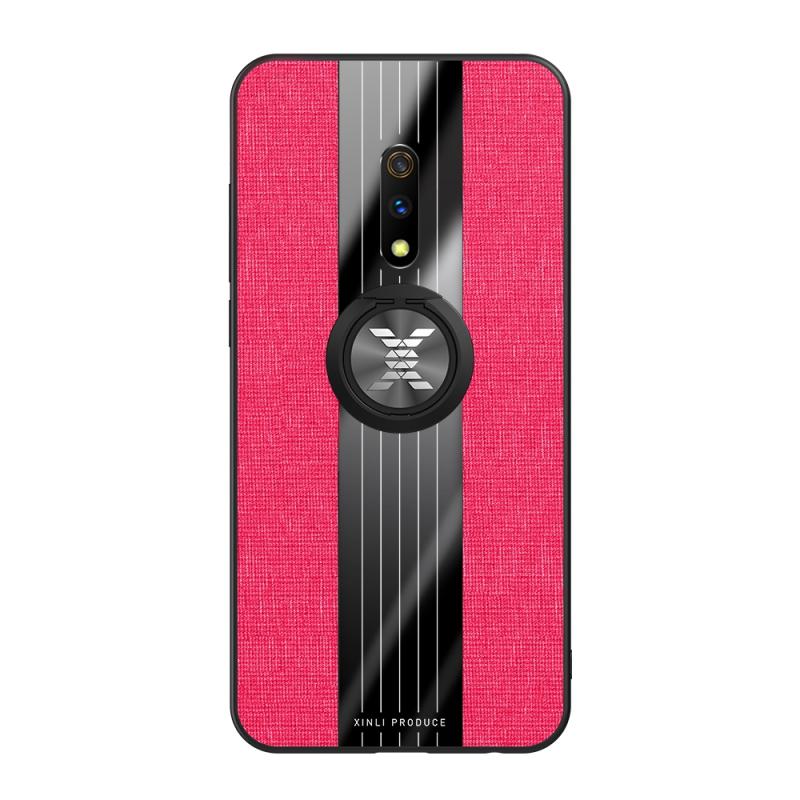 For OPPO Realme X / K3 XINLI Stitching Cloth Textue Shockproof TPU Protective Case with Ring Holder(Red) (XINLI)