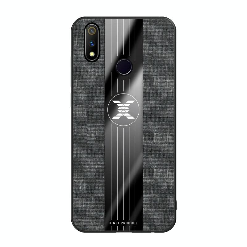 For OPPO Realme X Lite XINLI Stitching Cloth Textue Shockproof TPU Protective Case(Black) (XINLI)