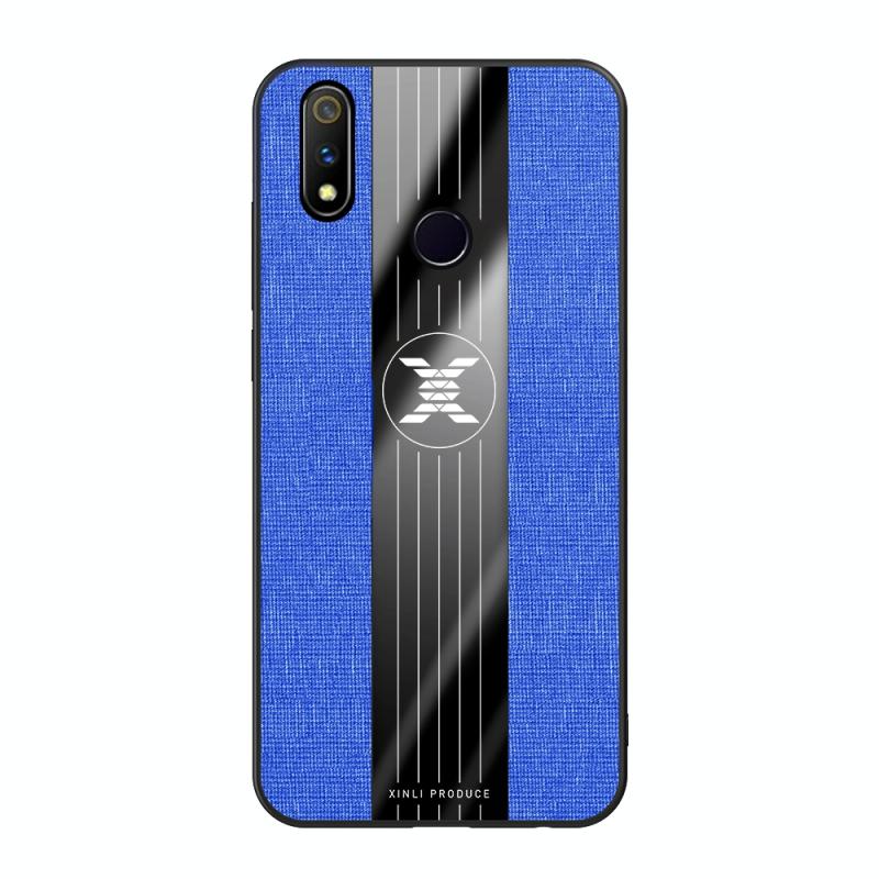 For OPPO Realme X Lite XINLI Stitching Cloth Textue Shockproof TPU Protective Case(Blue) (XINLI)
