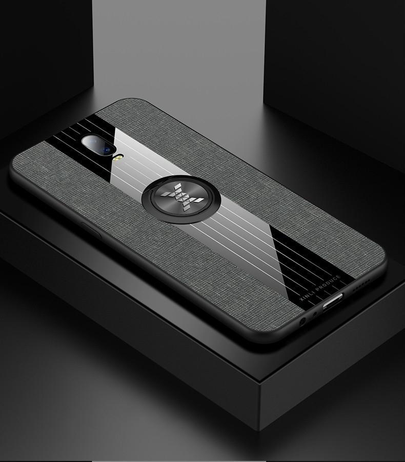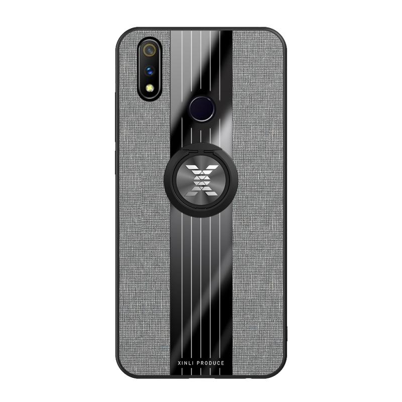 For OPPO Realme X Lite XINLI Stitching Cloth Textue Shockproof TPU Protective Case with Ring Holder(Grey) (XINLI)