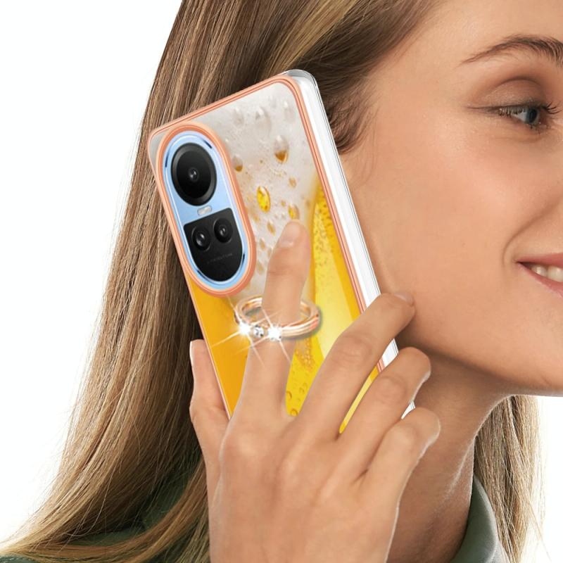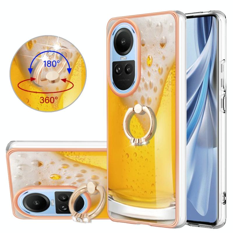 For OPPO Reno10 5G Global Electroplating Dual-side IMD Phone Case with Ring Holder(Draft Beer)