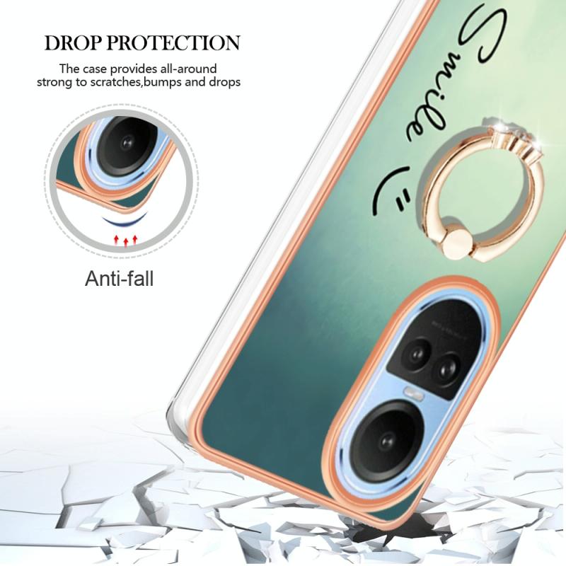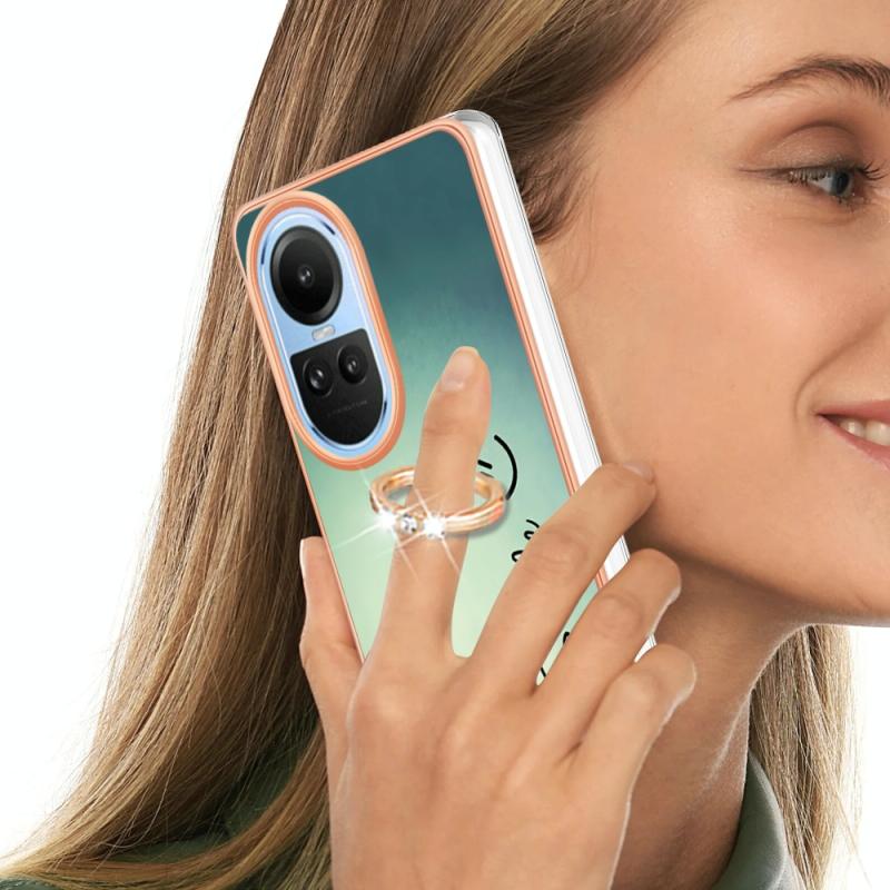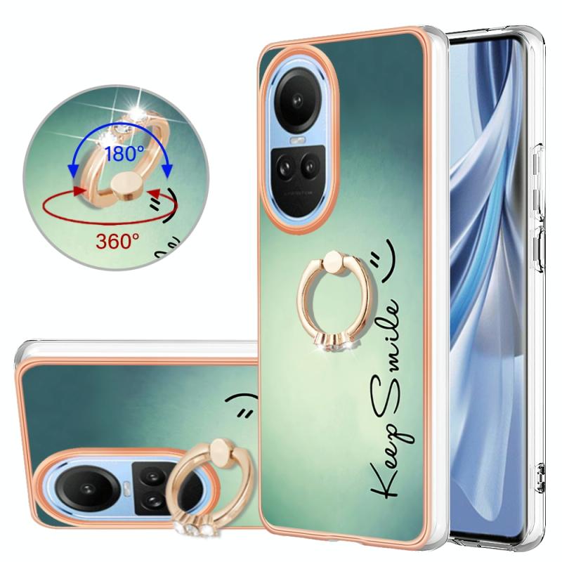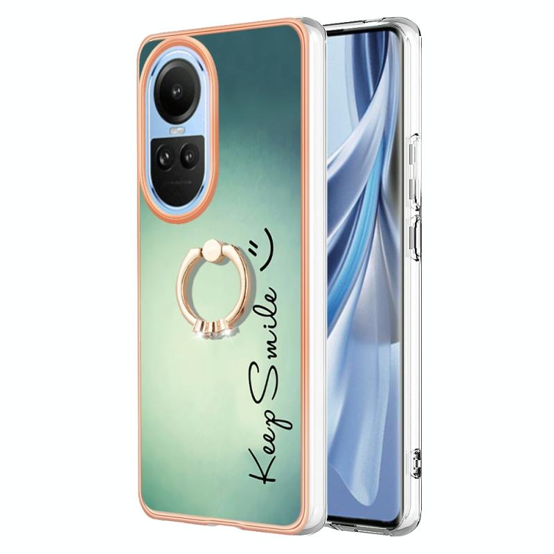 For OPPO Reno10 5G Global Electroplating Dual-side IMD Phone Case with Ring Holder(Smile)