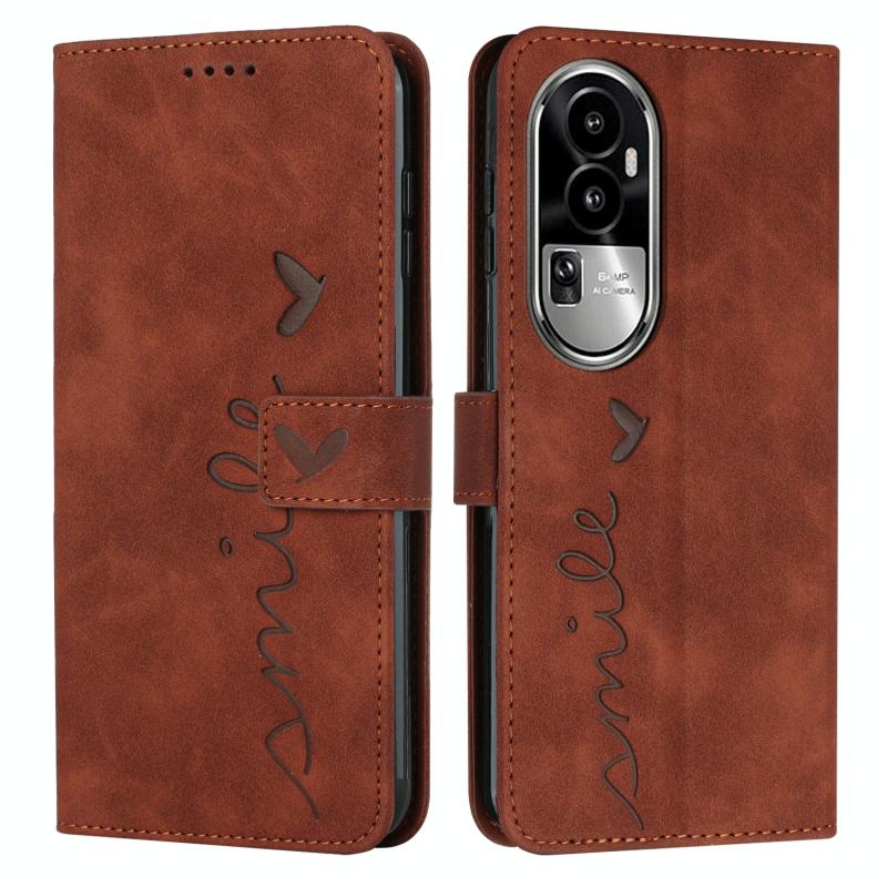 For OPPO Reno10 Pro+ Skin Feel Heart Pattern Leather Phone Case(Brown)