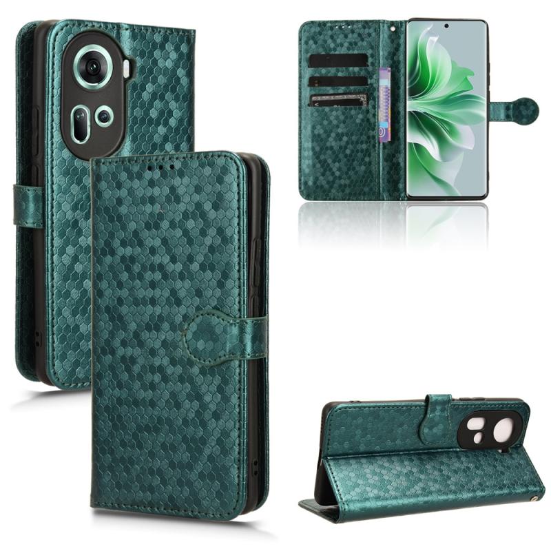 For OPPO Reno11 5G Global Honeycomb Dot Texture Leather Phone Case(Green)