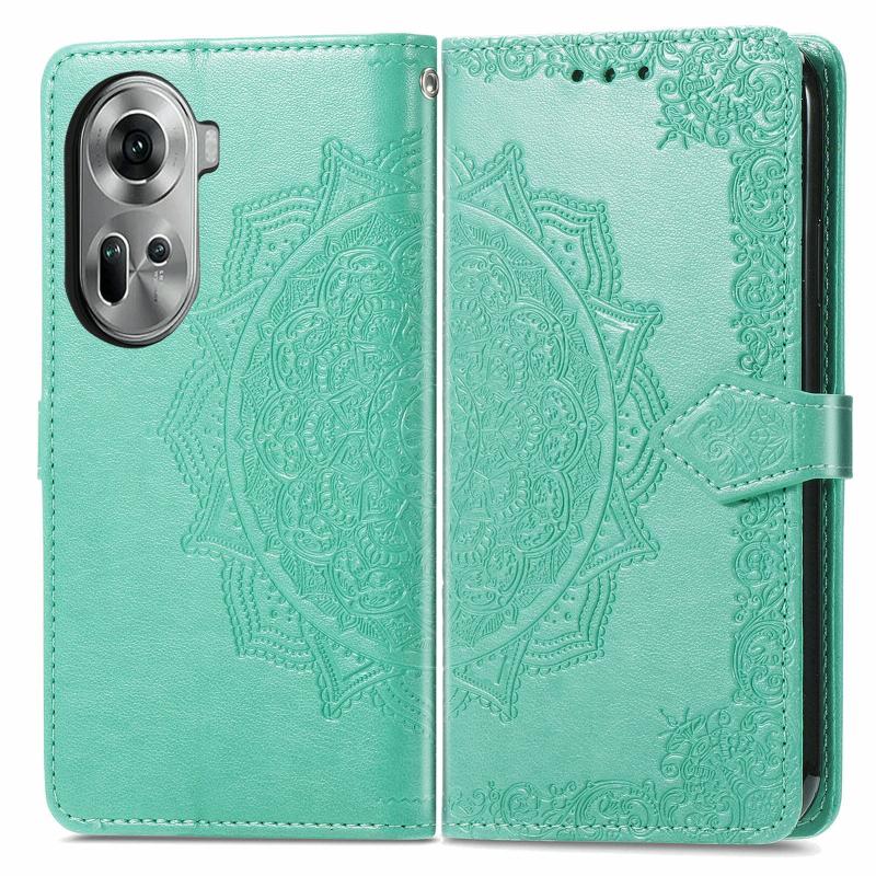 For OPPO Reno11 EU Mandala Flower Embossed Leather Phone Case(Green)