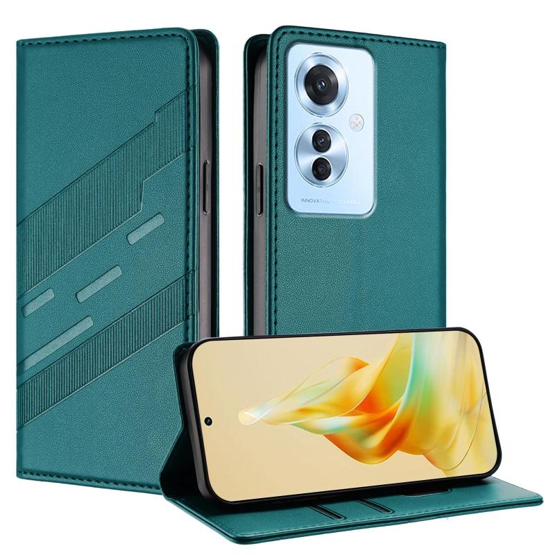 For OPPO Reno11 F Embossed Multi-functional Wallet Retro Leather Phone Case(Dark Green)