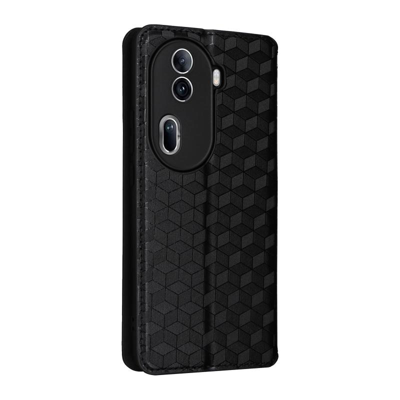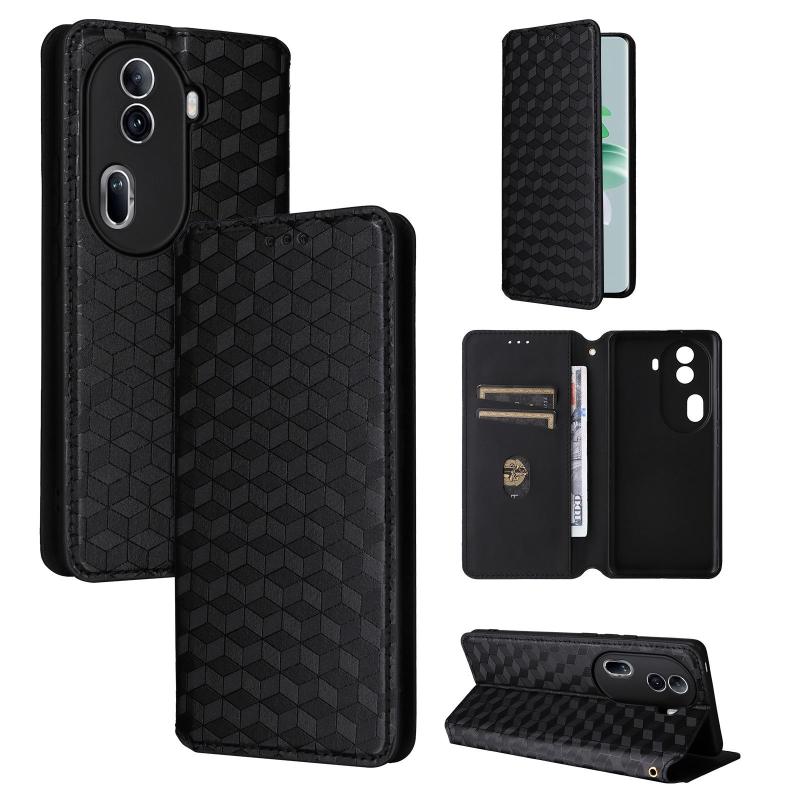 For OPPO Reno11 Pro 5G Global Cubic Grid Texture Flip Leather Phone Case(Black)