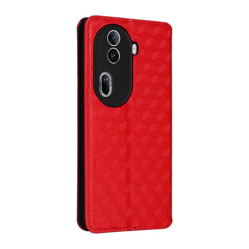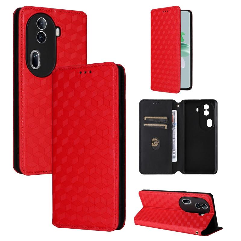 For OPPO Reno11 Pro 5G Global Cubic Grid Texture Flip Leather Phone Case(Red)