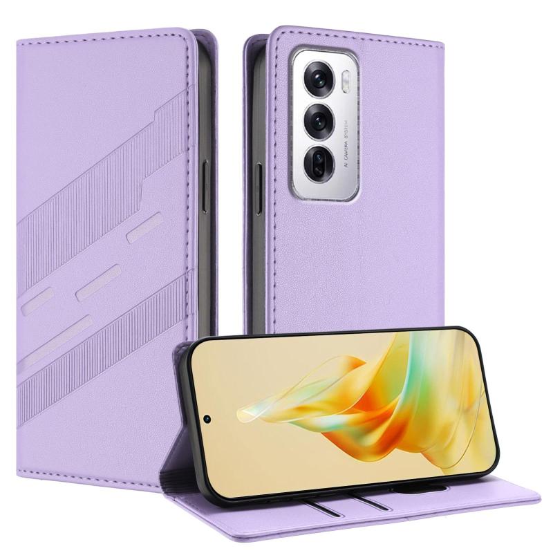For OPPO Reno12 5G Embossed Multi-functional Wallet Retro Leather Phone Case(Light Purple)