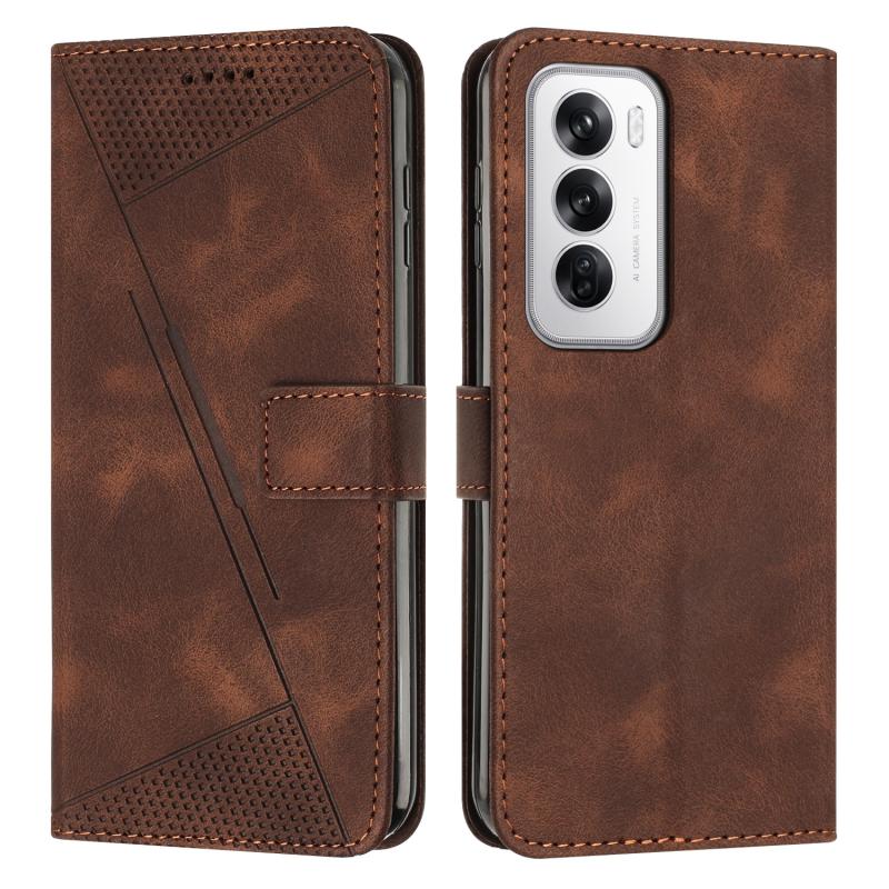 For OPPO Reno12 5G Global Dream Triangle Leather Phone Case with Lanyard(Brown)