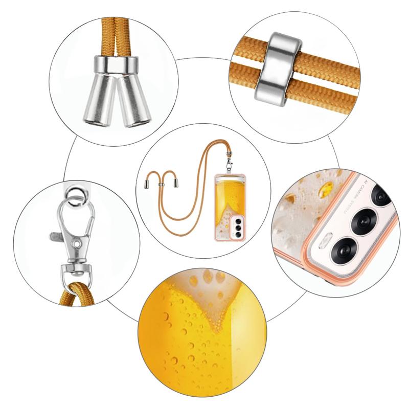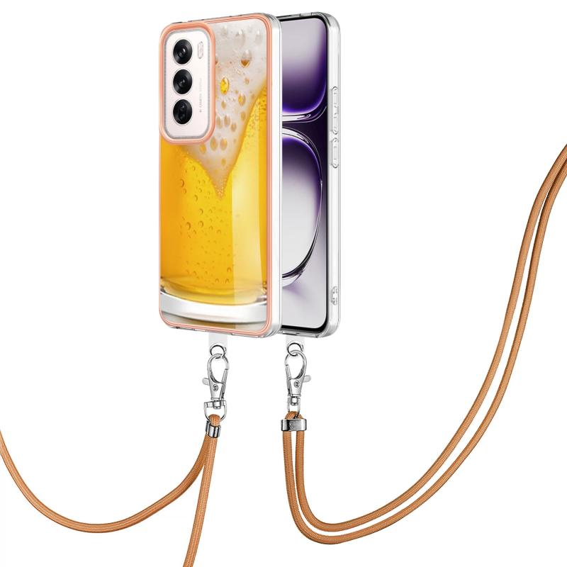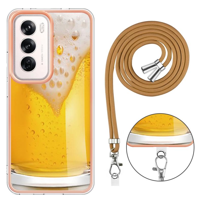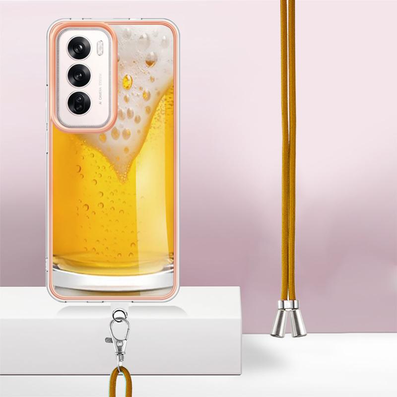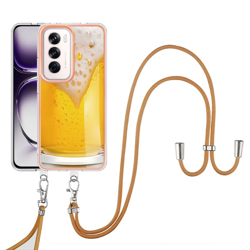 For OPPO Reno12 Global Electroplating Dual-side IMD Phone Case with Lanyard(Draft Beer)