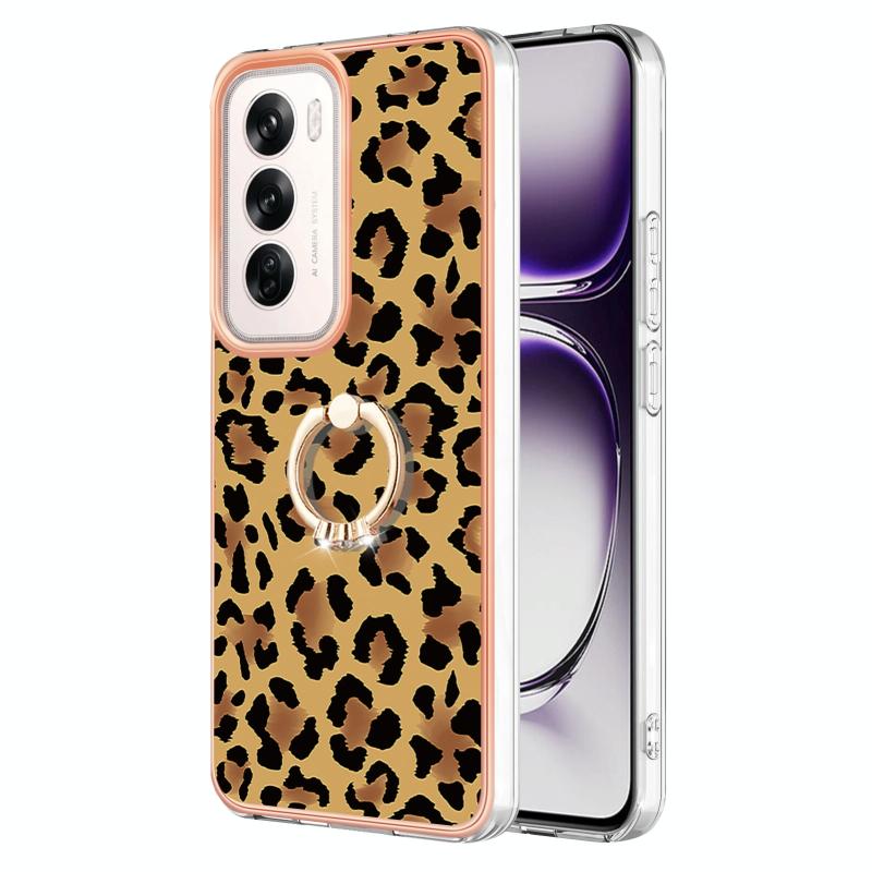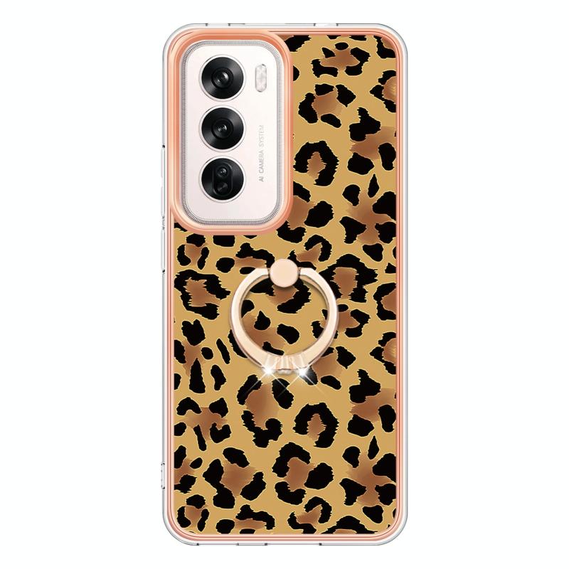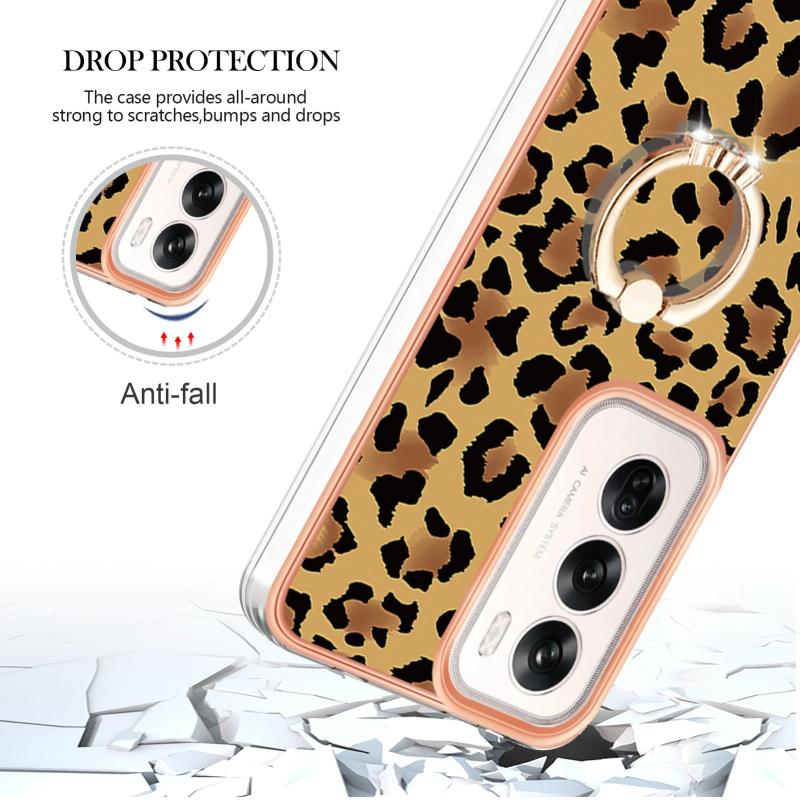 For OPPO Reno12 Global Electroplating Dual-side IMD Phone Case with Ring Holder(Leopard Print)